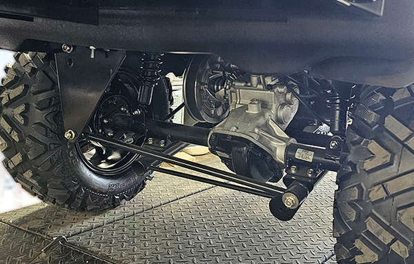The gas skid plate can be installed on the newer model of Yamaha Gas Umax and the John Deere Gator GS.